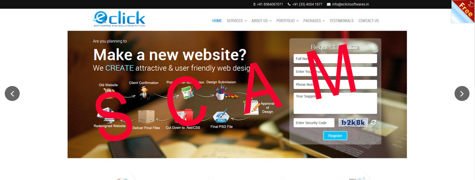 The Indian scammers eClick Technologies or eClick Softwares and Solutions have developed special strategies to lure victims into their web of deceptiveness. Their tactics are very cunning with two only goals: get positive testimonials, and steal as much money from the client as possible.