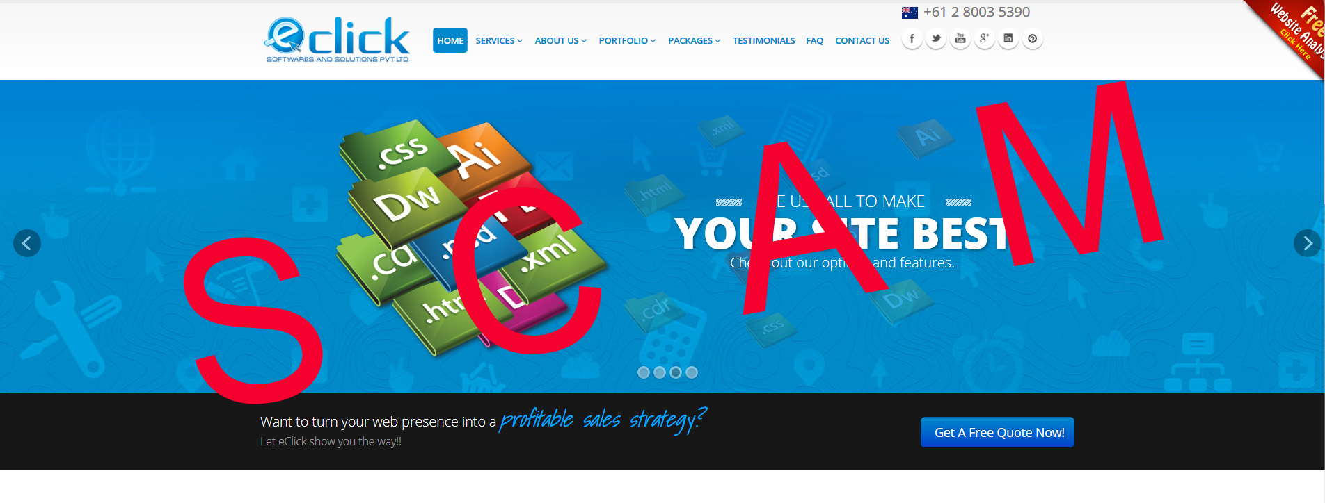 Firstly they installed a very large number of websites with names like ‘eclicktechnologies’ and ‘eclicksoftwares’ in order to create an impressive and deceptive image. Then they send e-mails to small businesses and companies saying that their websites though impressive – still deserve improvement, re-coding and to be mobile friendly.